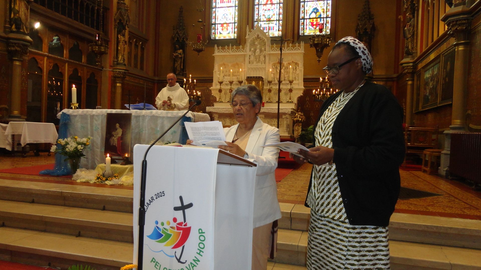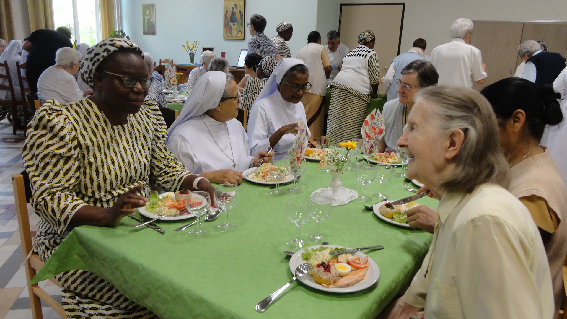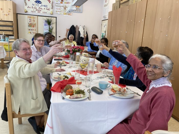 A good number of sisters were present, including Sister Elizabeth Roche and Sister Helen O’Brien from Anglo-Irish Region. The celebration began with the Eucharist, presided over by Bishop Lode Van Hecke of Ghent. After Mass, the congregation sang their way to the refectory, where a fraternal meal was offered to all.