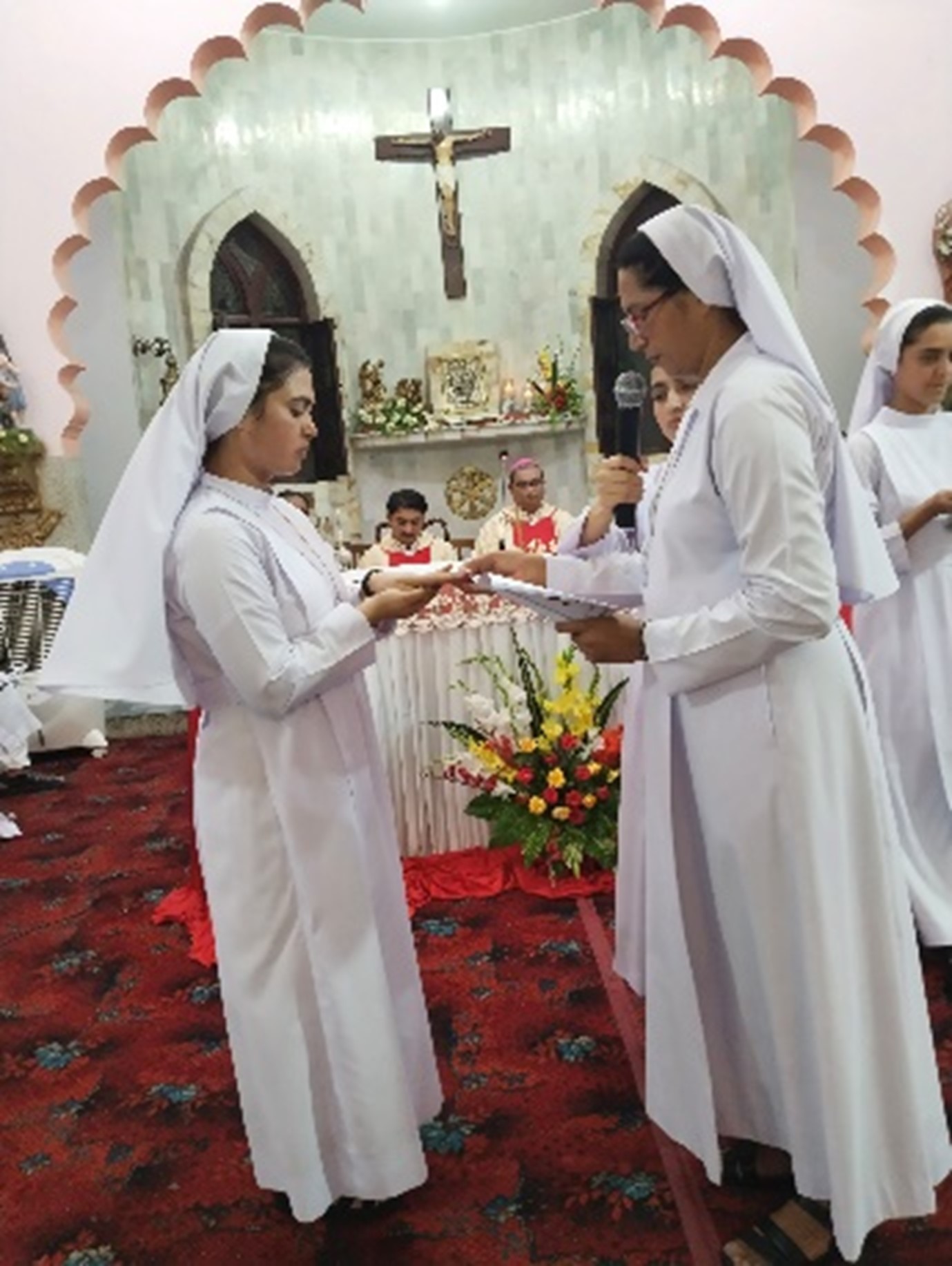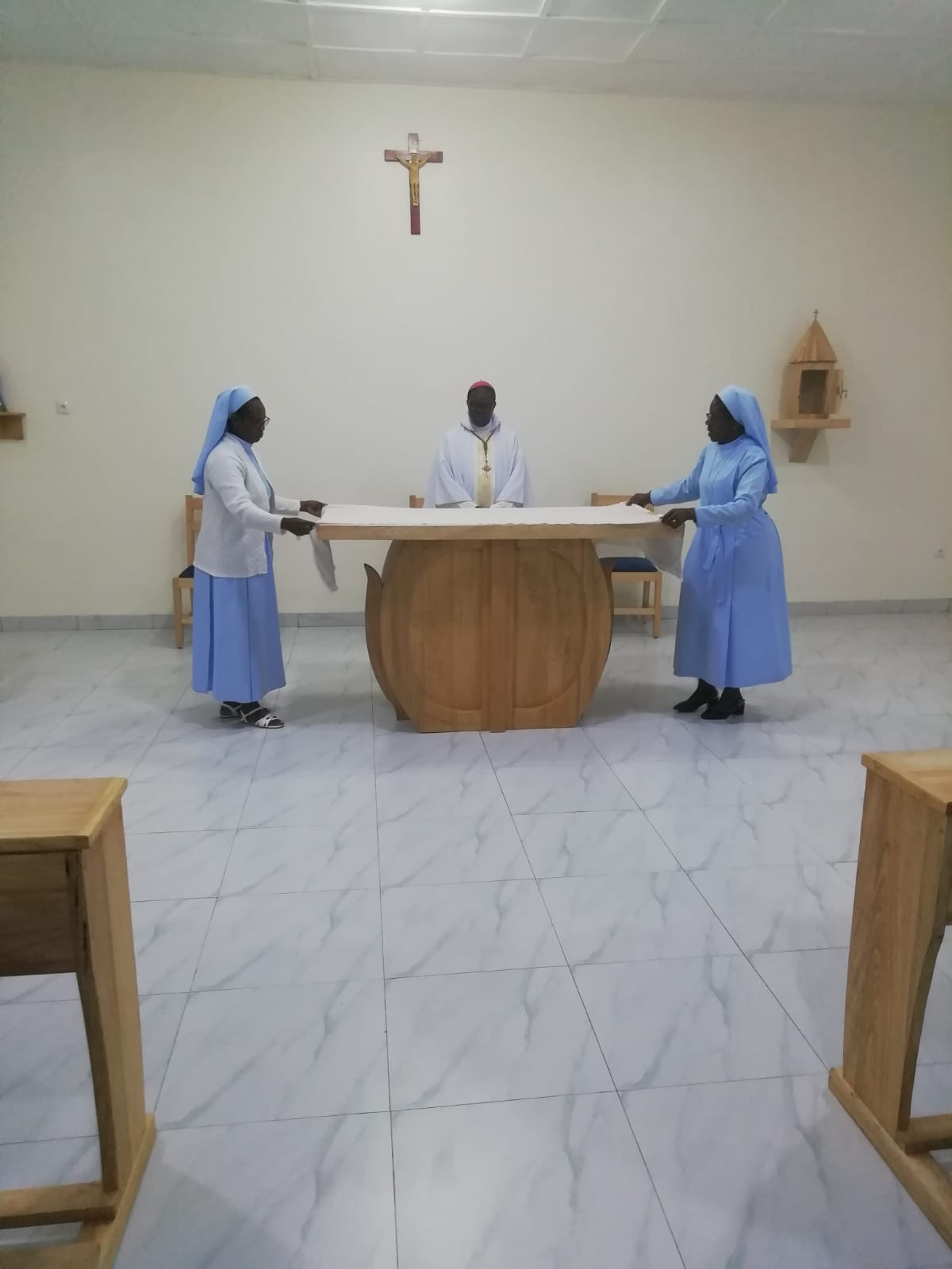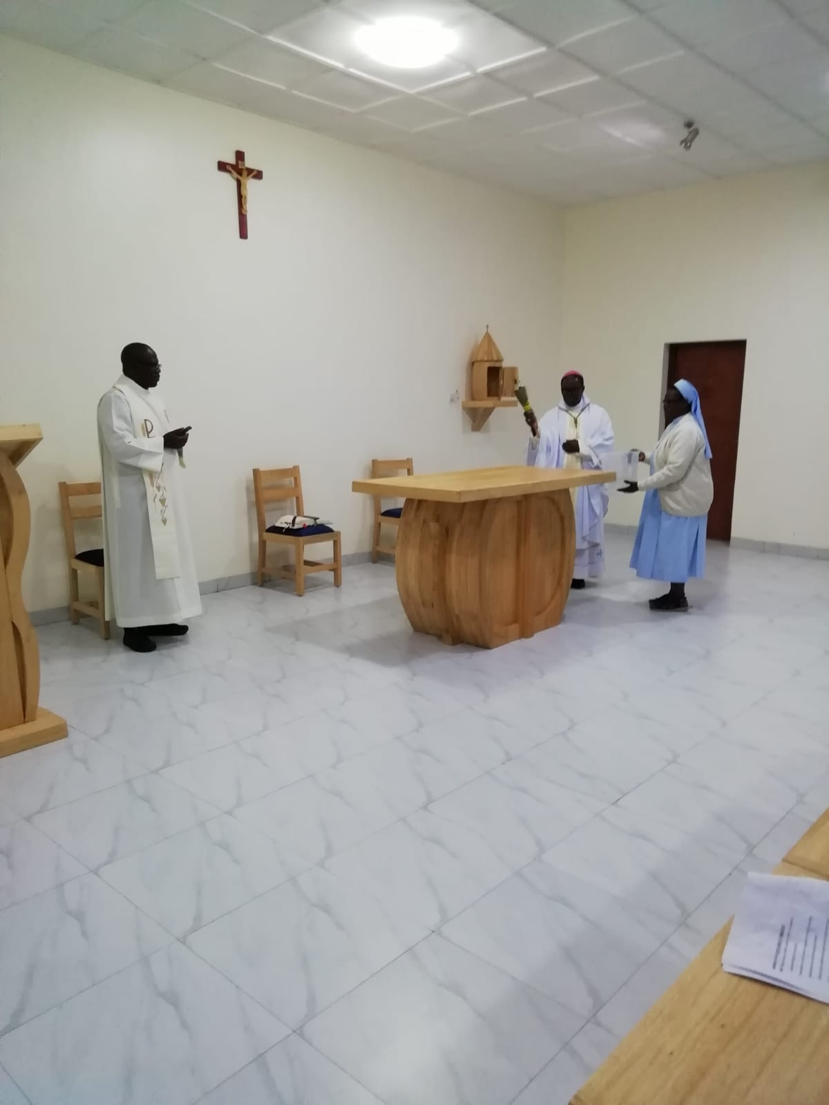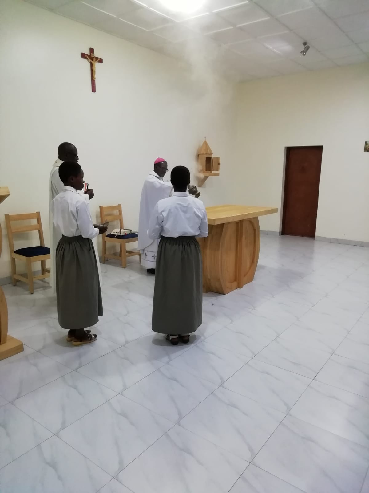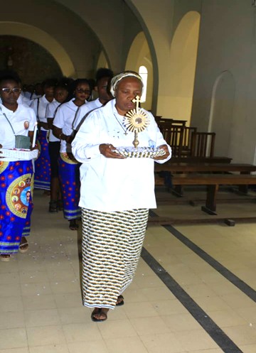 During the Mass, Sister Athanasie Mukangoga, one of the Councillors, was at the side of Sister Mary Paul, Vice Provincial. Sister Colette Uwamahoro was the Mistress of Ceremonies (MC), Sister Josephine Sieta was the ceremonialist, Sister Marie-Claire was in charge of the liturgy, Sister Teresa Le decorated the church.