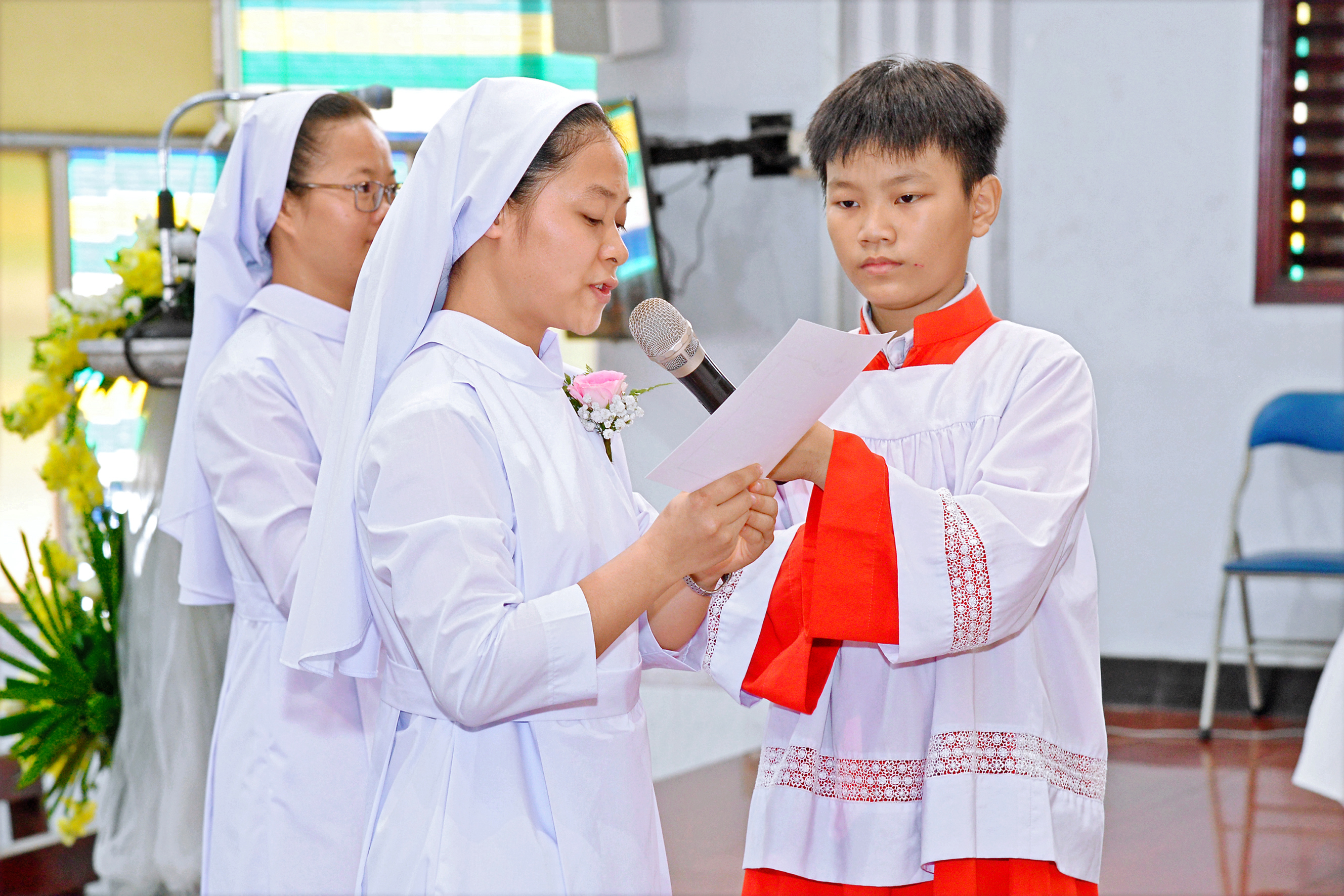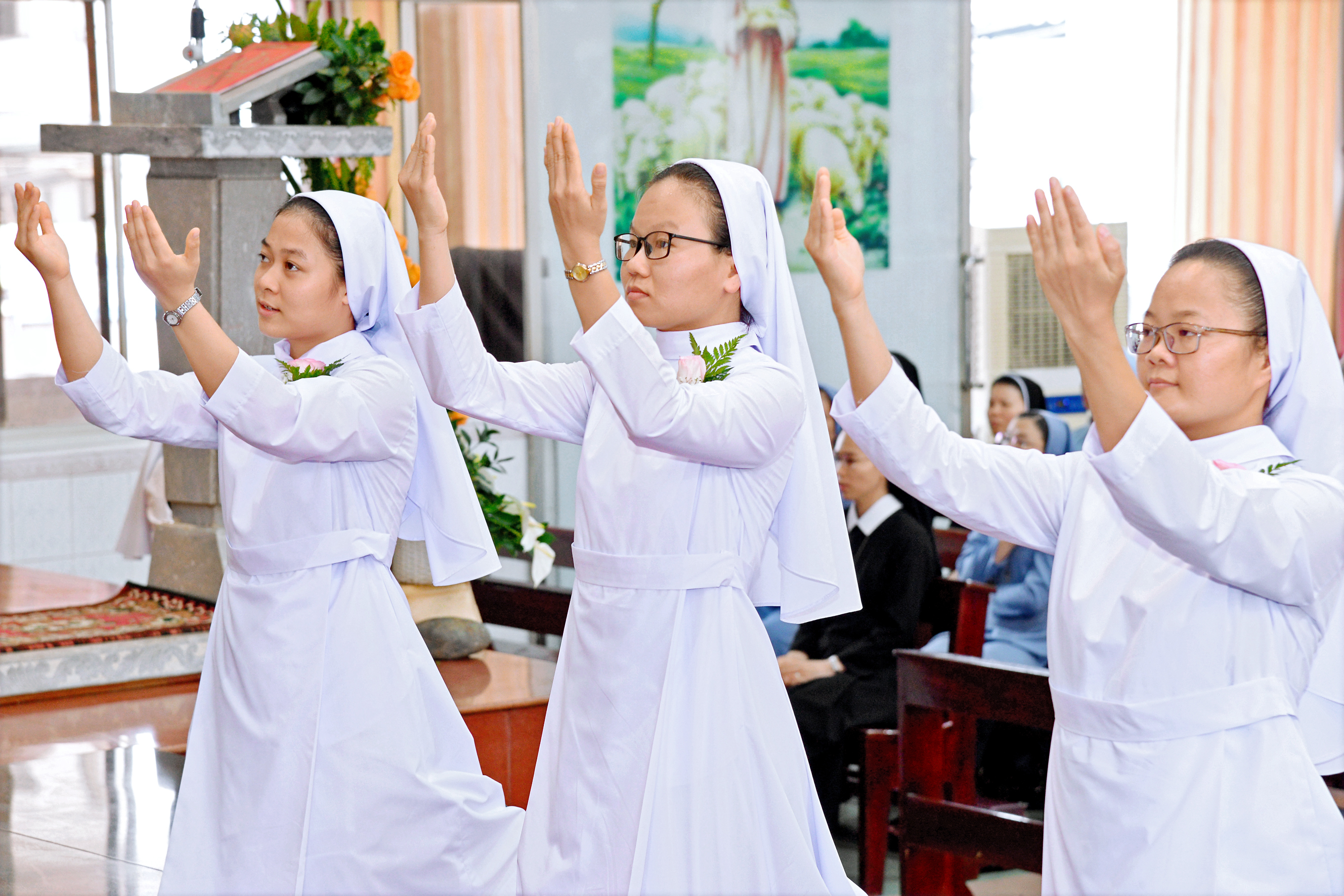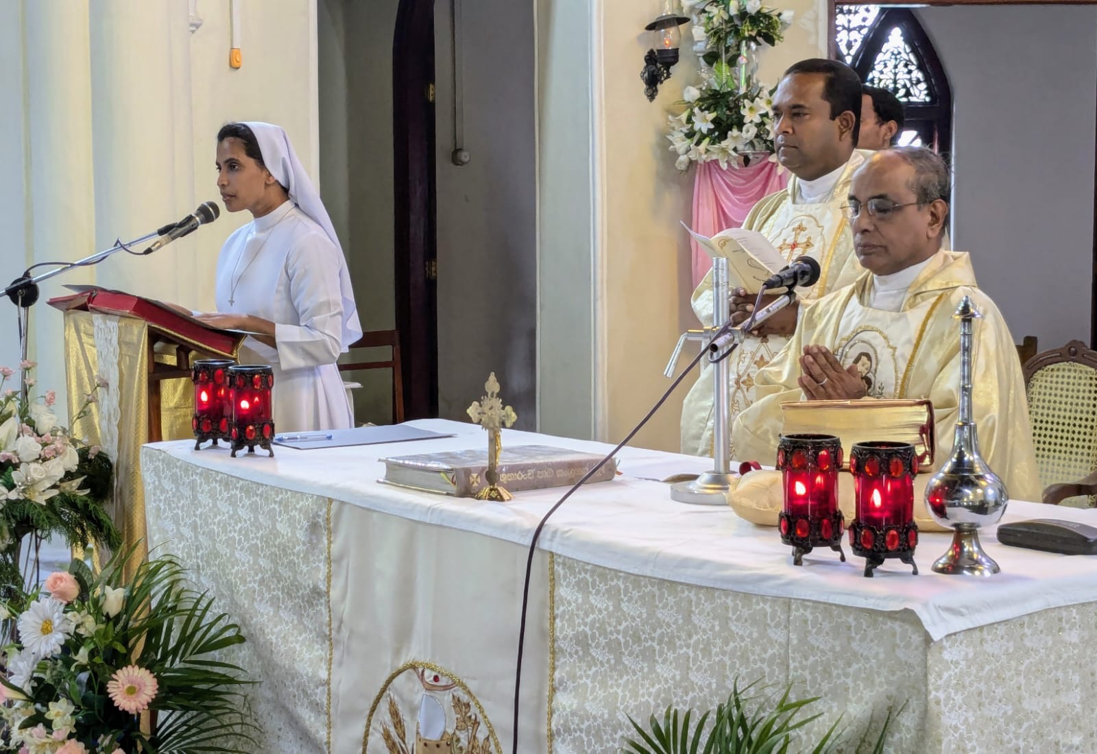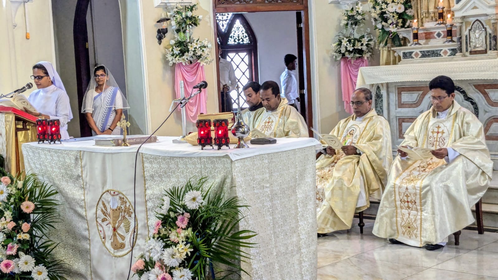 During the Mass, Sister Athanasie Mukangoga, one of the Councillors, was at the side of Sister Mary Paul, Vice Provincial. Sister Colette Uwamahoro was the Mistress of Ceremonies (MC), Sister Josephine Sieta was the ceremonialist, Sister Marie-Claire was in charge of the liturgy, Sister Teresa Le decorated the church.