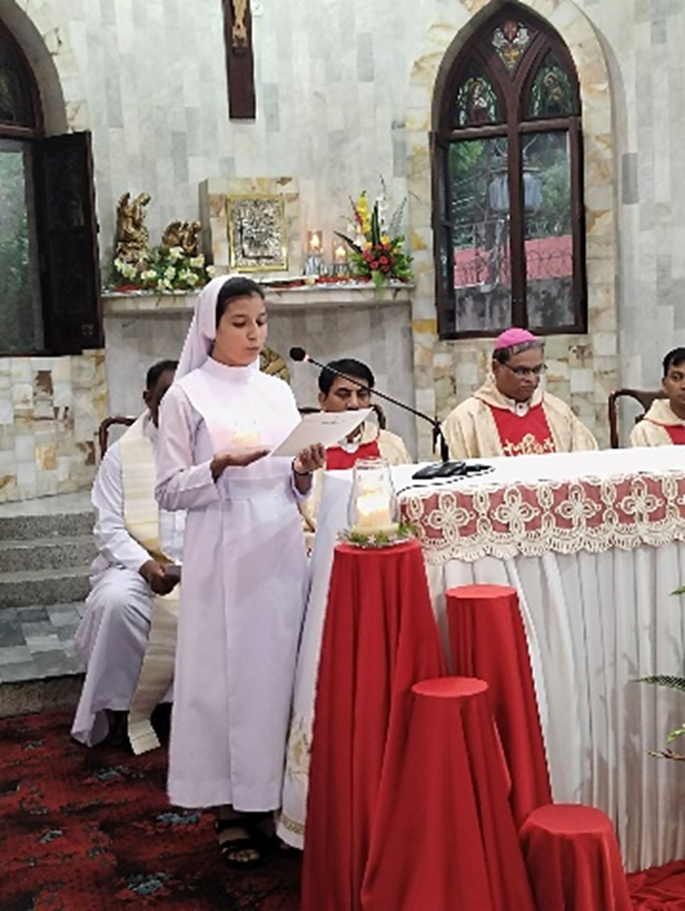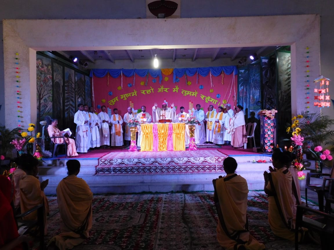 Bishop Agnelo gave a homily befitting to the occasion based on the theme chosen for the Eucharist, “Called to serve the most vulnerable” in reference to the parable of the "Good Samaritan". The melodious singing, offertory procession, doxology at the elevation, etc. made the Eucharistic celebration more solemn and meaningful. The presence of the parents and relatives of the two Sisters, a number of parishioners, religious from nearby communities, besides the SCJMs from many communities, added joy to all present, especially Sisters Roja and Dipti.