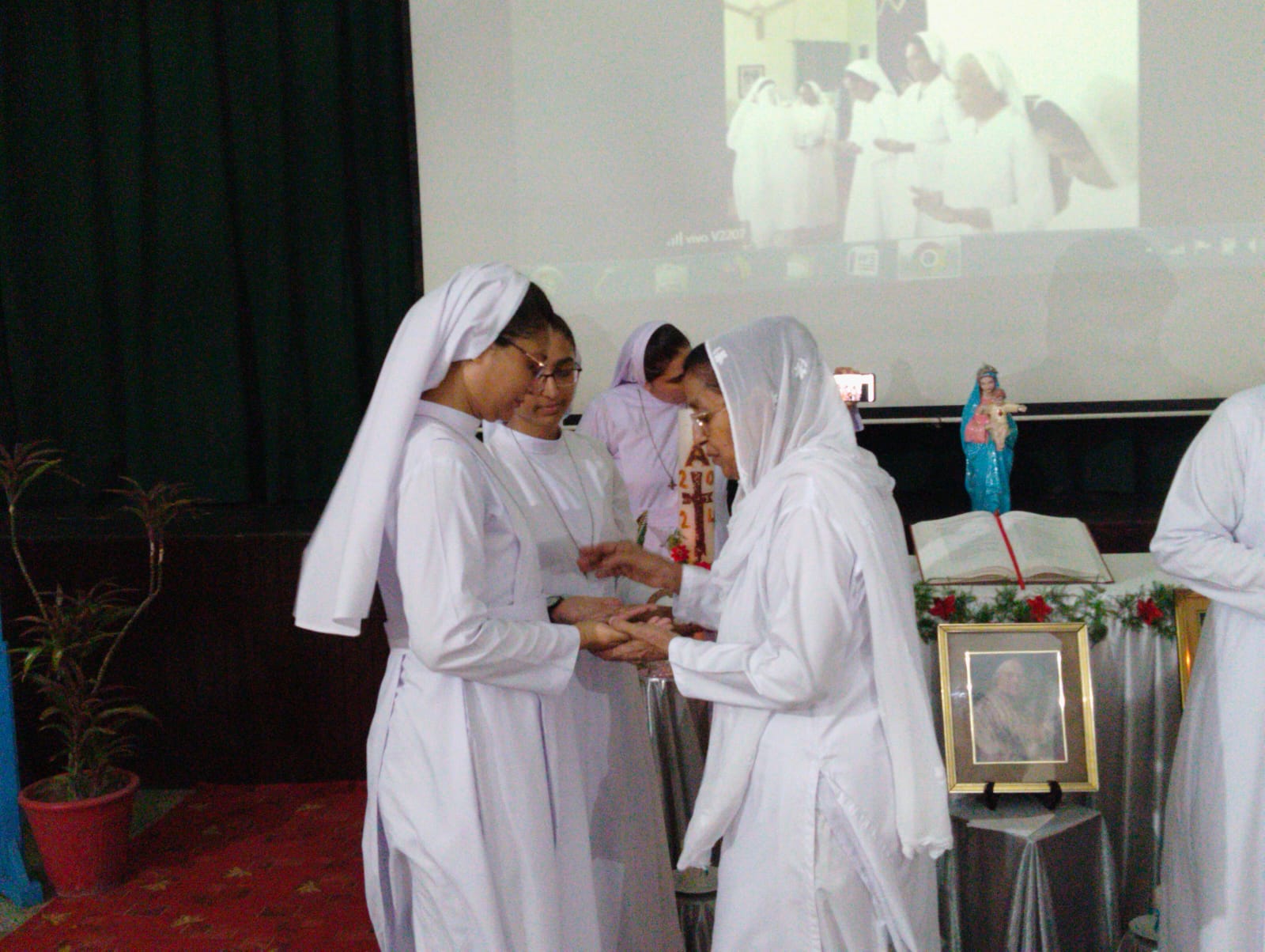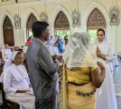 After the Holy Mass, the perpetually professed Sisters were greeted in the Church itself as they cut the cake. That was followed by greetings, photos, gifts, etc. Finally, everyone proceeded to the hall above the Church for a sumptuous agape.