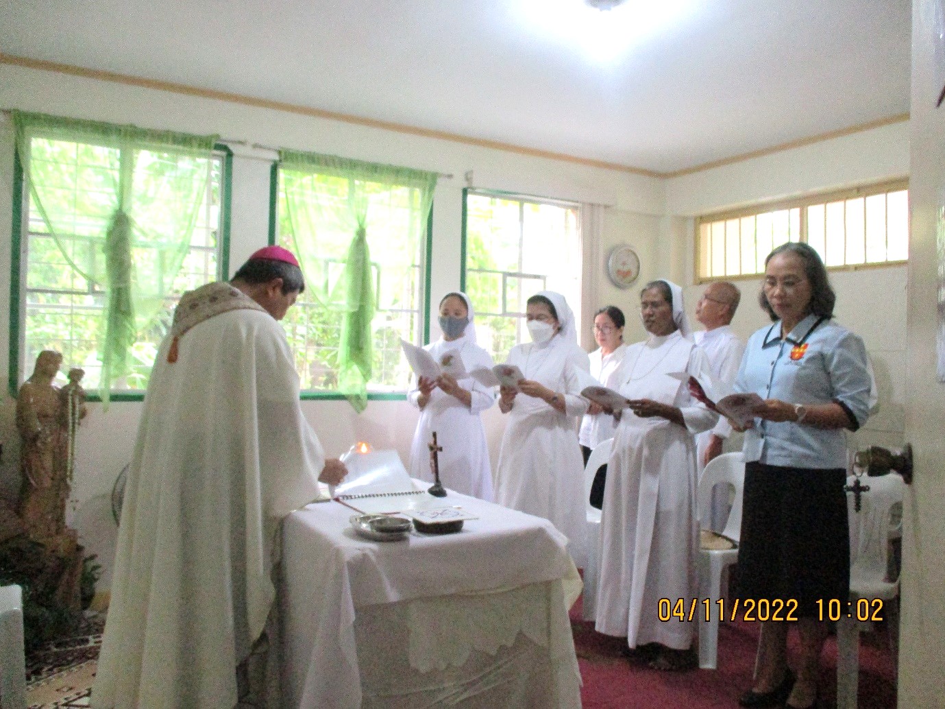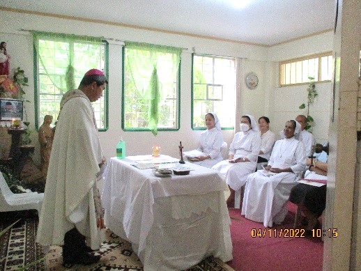 On the 4th November 2022, the Holy Mass was celebrated, presided by Most. Rev. Bishop Joel Z. Baylon, D. D. (Bishop of Legazpi) at 3:00 o’clock in the afternoon at the Sacred Heart Convent Chapel. Before the mass started, there was an introduction by Sr. Swarna Fernando. It gave a brief historical background of SCJM’s presence in Legazpi, Philippines, and the present context of its conversion into an international community. Sr. Deepthika Silva read the letter of Sr. Lucy Jacob Palliam Pallithura confirming the inauguration of the community and the membership namely; Sr. Swarna Fernando (Local Superior), Sr. Madelene Bibera Nueza, Sr. Anna Le Thi Thuy and Sr. Teresa Nguyen Thi Thuy.