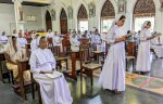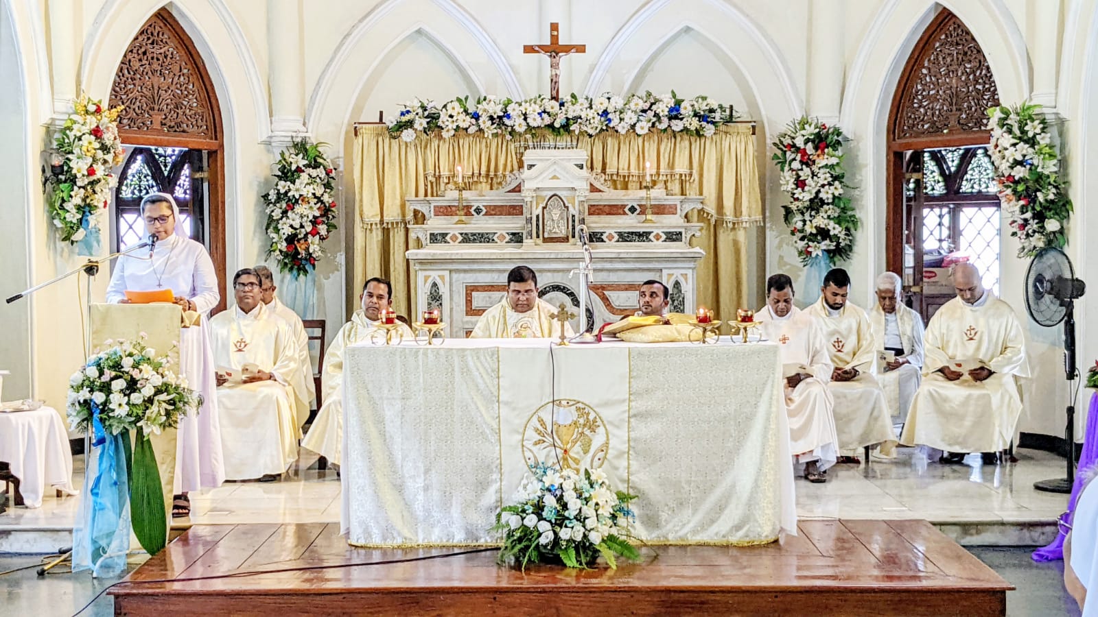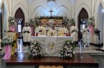 At 4:00 pm, the procession for Holy Mass began traditionally by singing the hymn: “I rejoiced when I heard them say, let us go to God’s house”. The Holy Mass was presided over by His Excellency Christophe Zakia El-Kassis, the Papal Nuncio. The homily was given by the Nuncio in which he recalled the outstanding events of our history right from its start in 1897, highlighting our charism of ministering to the needy and vulnerable of our society and our work in education, health care and pastoral ministry. The whole Mass was celebrated solemnly, with beautiful melodious hymns. The Chapel was arranged beautifully and artistically in a befitting manner for the joyful occasion of the 125 years jubilee.