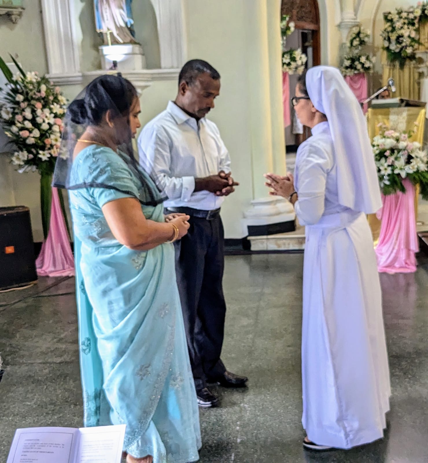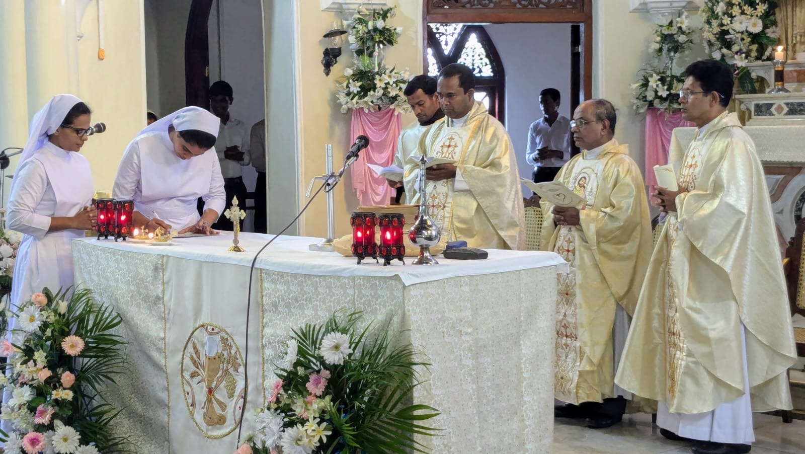 The presence of a number of priests from the diocese, religious brothers and sisters from around Gurgaon, parishioners, SCJMs from all the nearby communities and above all the presence of many relatives of the Sisters who were making the profession truly added joy to the auspicious occasion. A few of our Sisters, Postulants and brothers from the Minor Seminary of Delhi Archdiocese lend their melodious voices to making the singing beautiful and we are indebted to Rev. Fr. Wilfred D’Souza, the Parish priest who trained them. The whole ambience of the Church with the beautiful and delicate decoration was fitting for the special moment.