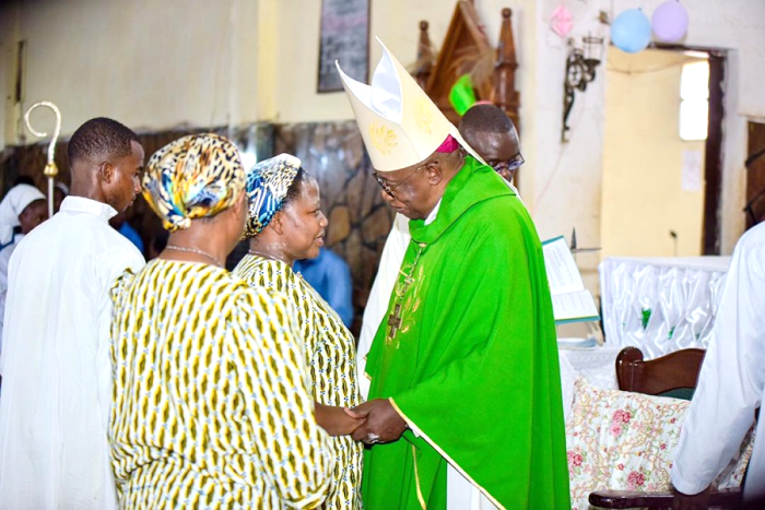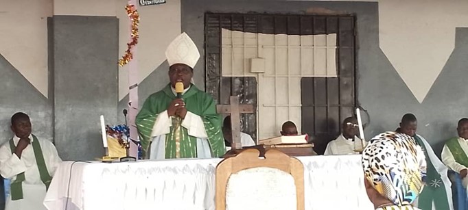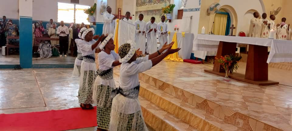 This beautiful Eucharistic celebration took place in the church of Notre-Dame de la Paix, Gécamines at 9:00 am, and was presided over by Monsignor Dénis MOTO, Vicar General of the Archdiocese of Lubumbashi, surrounded by a dozen priests who had come from various parishes in the archdiocese for the occasion.
