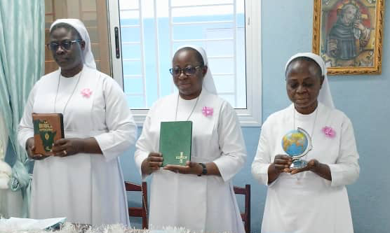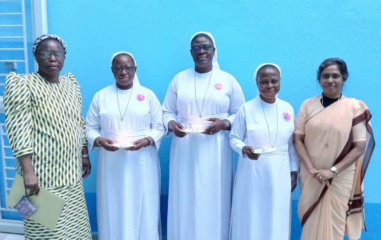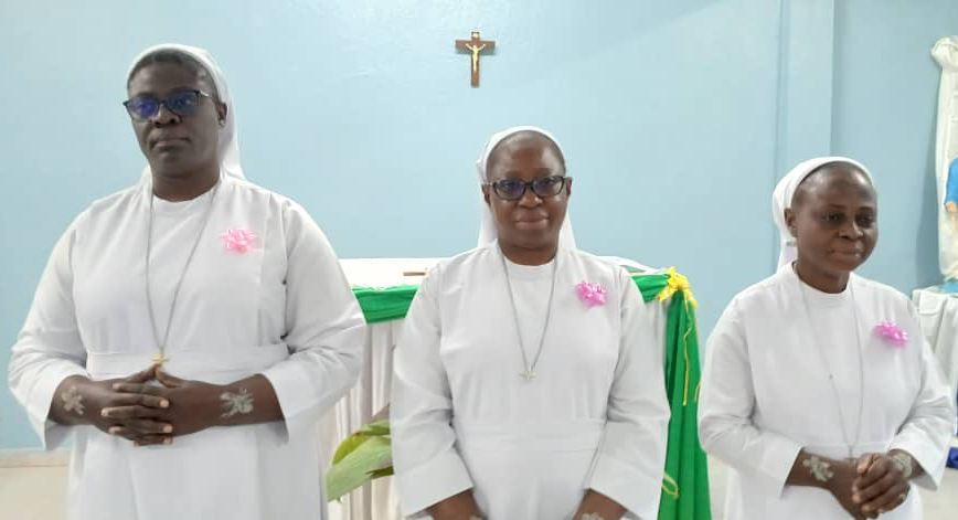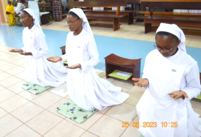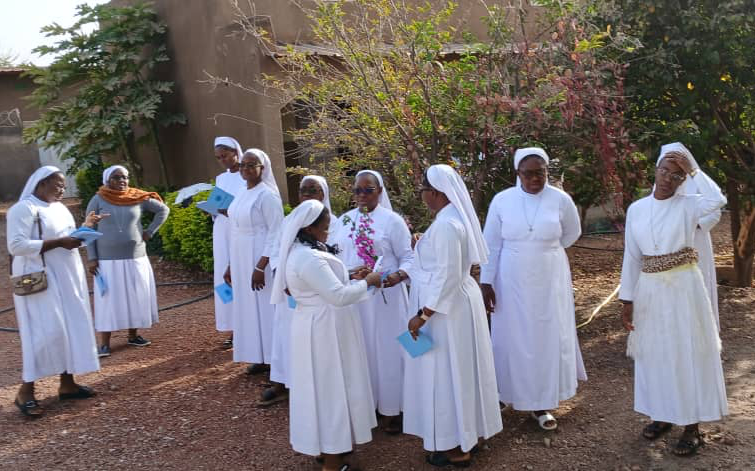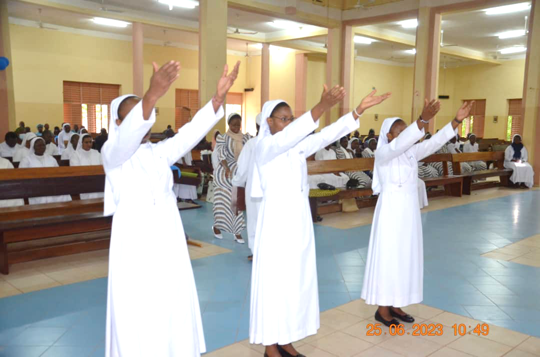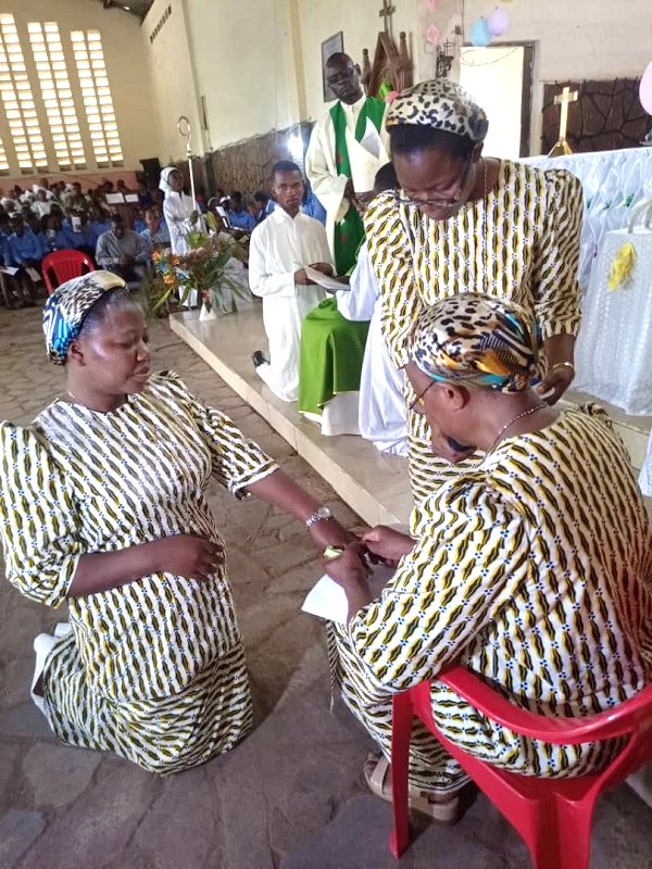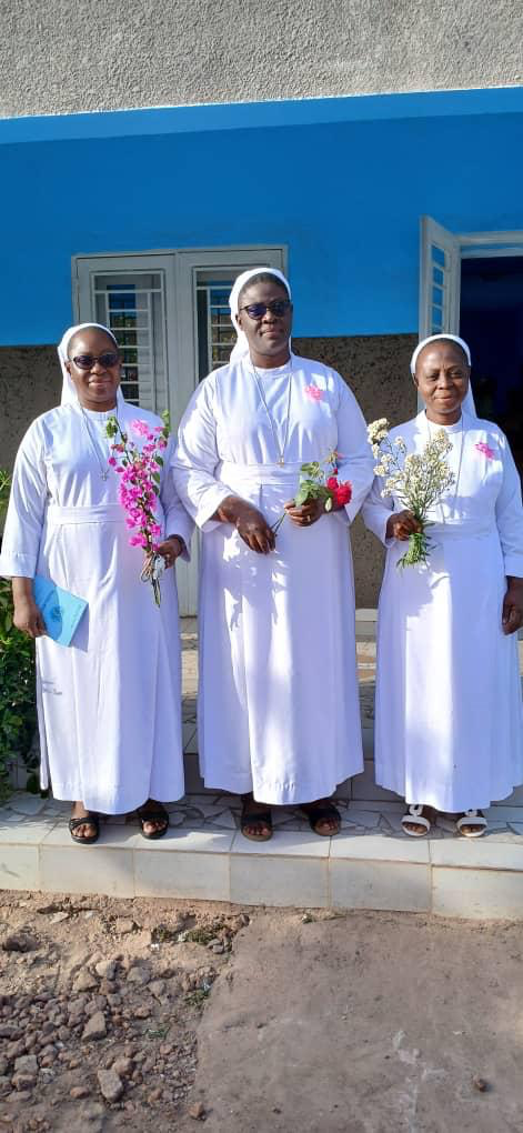On 25 June 2023, God filled us with joy through the gift of our three young professed sisters: Sister Providence Kunsongi Vakanda, Sister Blandine Ntumba Kayenga and Sister Rita Masangu Banza, who made their first vows in San, Mali, and our two Jubilee Sisters: Sister Henriette Mulanga Kabengele and Sister Monique Mutshiaudi Mukenge, who renewed their fidelity after 25 years in the service of Love.