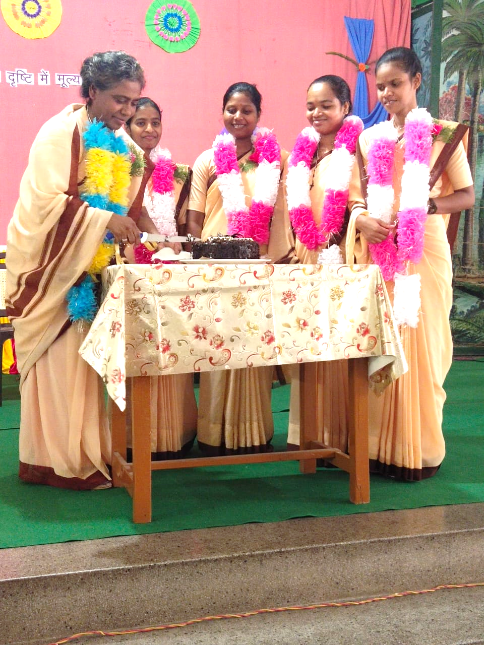 From left to right: Sr. Victoria Minj, Sr. Sushma Beck, Sr. Mary Joseph Valiyankal (Provincial Superior), Sr. Jessy Joseph Varayankunnel, Sr. Lilly Mary Pallipurathu, and Sr. Manju Rajkishori Beng
