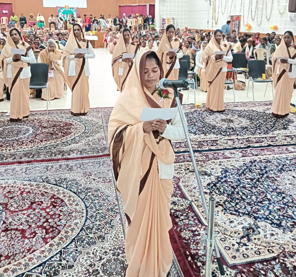 After the Holy Mass, all proceeded to the ground of St. Joseph School, the place where our first sisters touched the holy ground 125 years ago. Here, the second part of the day took place. The venue was decorated magnificently with flowers and dazzling lights.