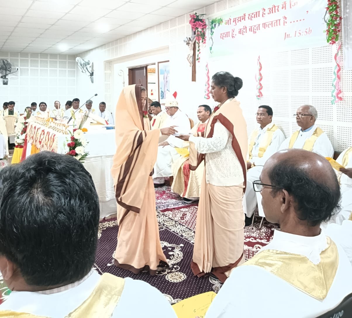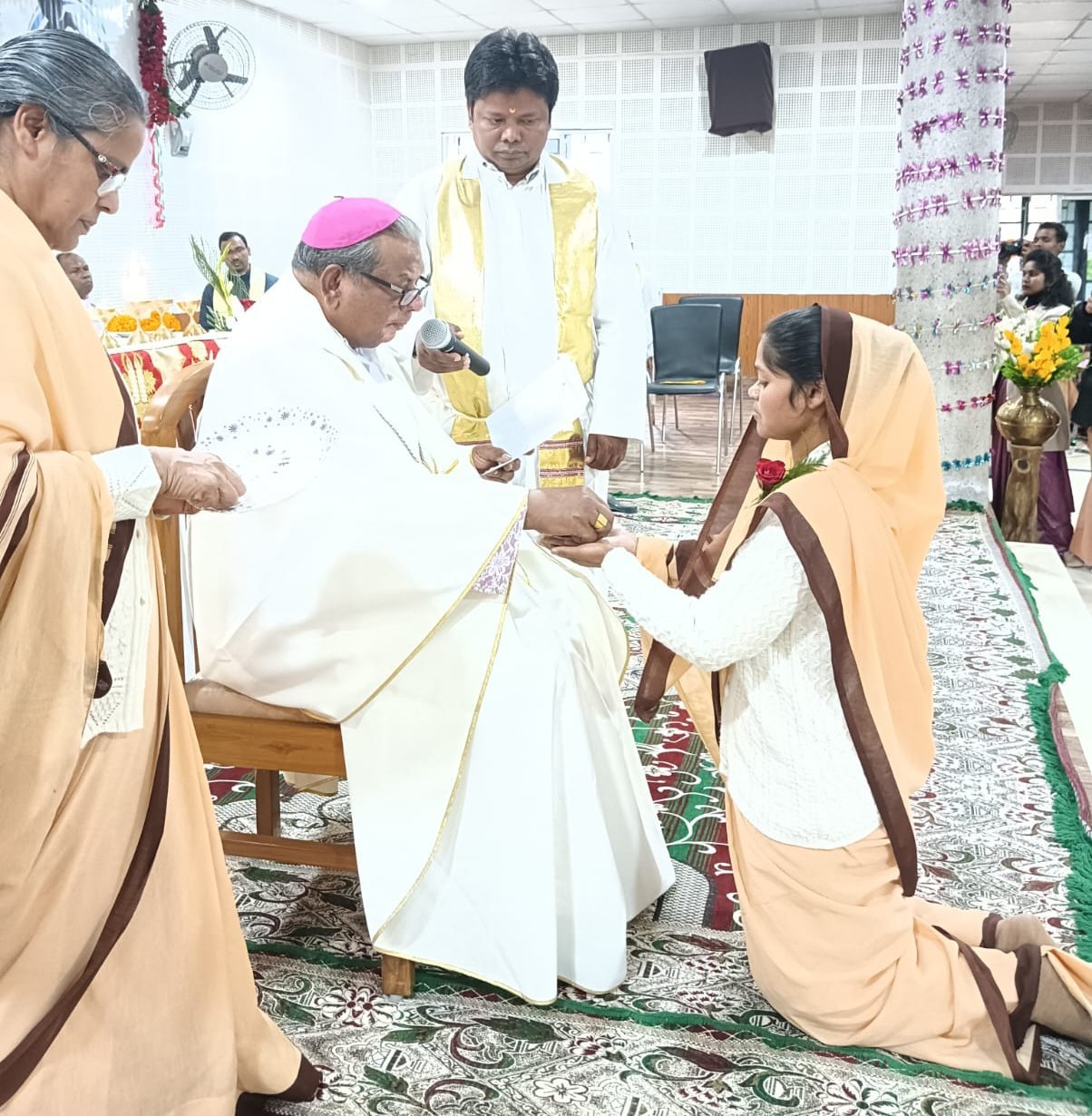 The Lord said to me, “I chose you before I gave you life, and before you were born I selected you to be a prophet to the nations” (Jer. 1:4-5). These words of the Lord to prophet Jeremiah have come true in the lives of our dear Sisters Roja Gopanaboina and Dipti Kerketta. The words of the Lord who called and chose them to fulfill a special purpose for Him and his people have been fulfilled on 10th February 2023, when they said their final “Yes” to Him. I believe that their mission will continue in the footsteps of the Lord with greater enthusiasm and zeal. The Lord has been and is faithful to them and they in turn grew in His love and service and accepted Him as their sole Master.