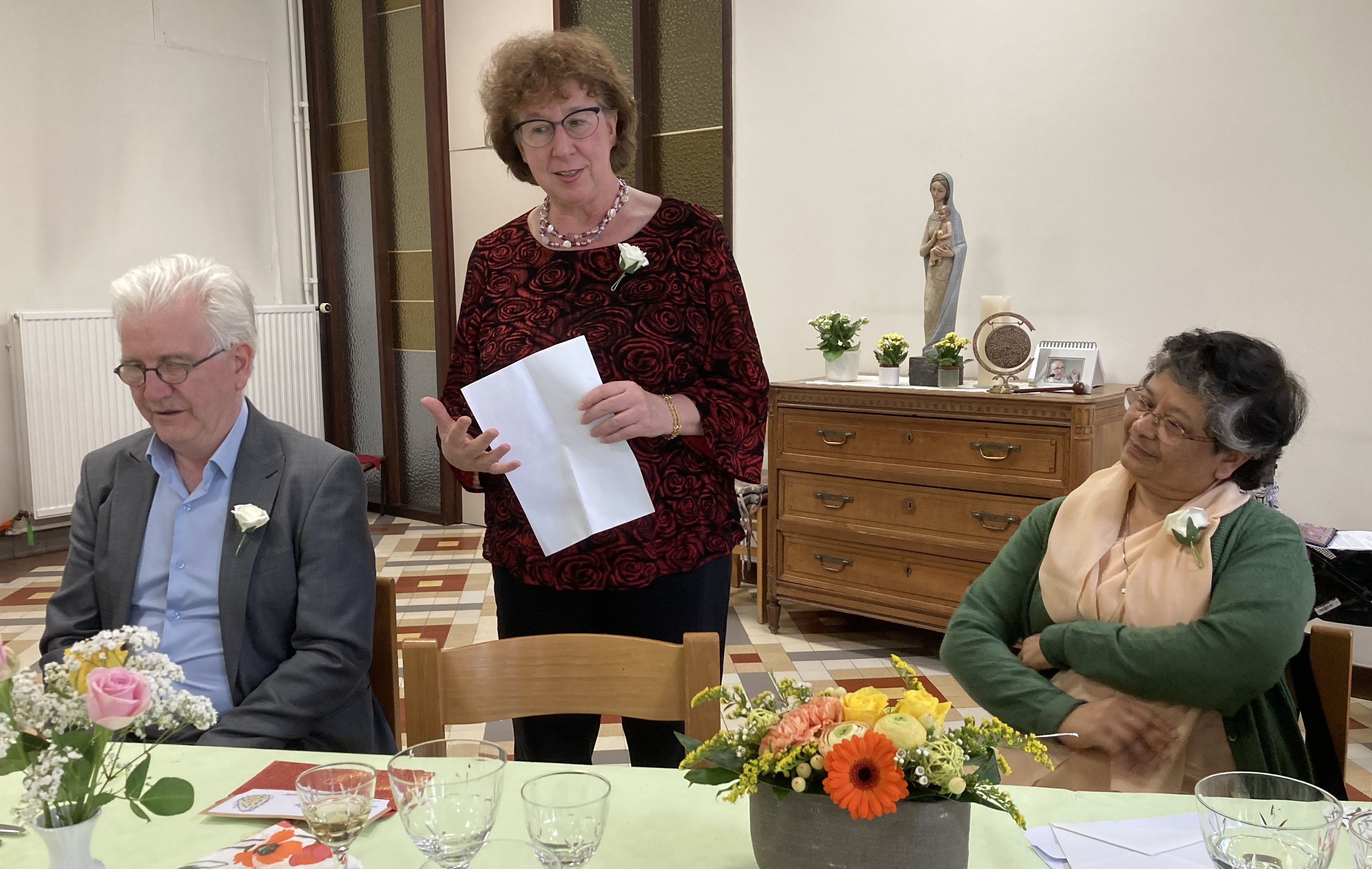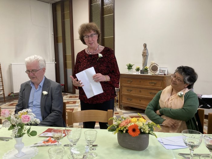On 13/05/2023, three jubilarians - Sister Françoise Bedoret (70 years of religious life), from Belgian South Community, Sister Lieve Ghijs (60 years of religious life) and Sister Rina Van Den Bempt (60 years of religious life), both from Dutch-speaking Region, were present at the celebration at the Mother House in Ghent. The other jubilarians could not attend the celebration due to their state of health.