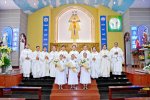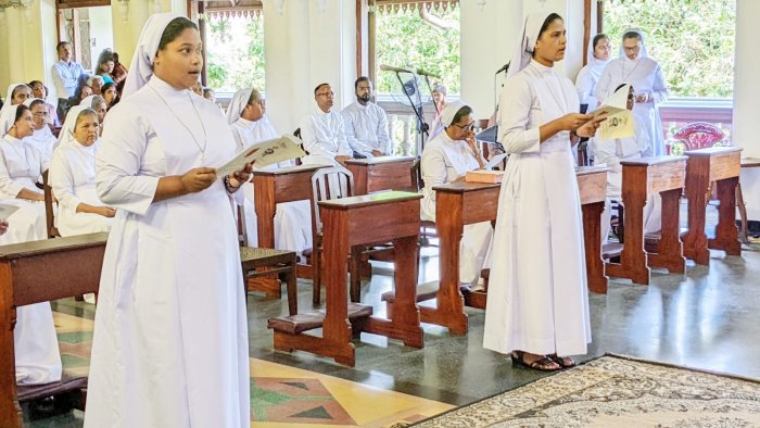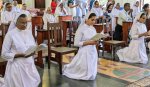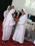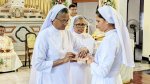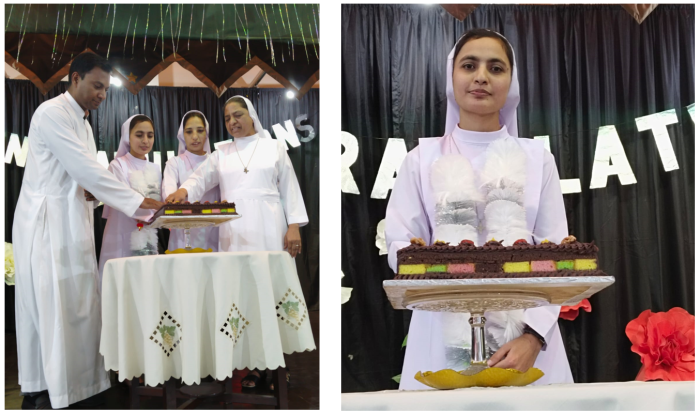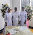 At the end of the Mass, the archbishop and all the priests joined the finally professed sisters for a photograph. As they cut the cake, and sweetened their mouths, the choir sang the Congratulation song, and the felicitation went on for some time, after which everyone proceeded towards the community dining room and enjoyed the agape.