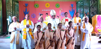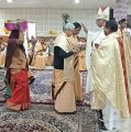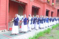 The welcome address was given by Sr. Sushma Beck, the superior of Nirmala College community. The choir led by Sr. Sushma Ekka, Sr. Rita Beck and Sr. Dayamani Tirkey along with some junior sisters and the hostel girls made the liturgical celebrations more devotional and meaningful. The archbishop gave a very inspiring sermon on the theme of the day: “He who abides in me and I in him bears much fruit” (Jn 15:5b). Just before they pronounced their vows, the Litany of the Saints was sung - imploring them to intercede for these four sisters who were going to commit themselves to God for the rest of their lives. The vows were received by Sr. Mary Joseph the Provincial. After the prayer of consecration was the ceremony of the blessing of the ring and they received the ring from the Provincial with great love, respect and honor. During the offertory, the sisters offered symbolic gifts and prayers to the Lord. After Holy Communion, Sr. Rosline Aind, one of the finally professed sisters, proposed the vote of thanks.