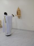 The Eucharistic celebration took place in the chapel of the Our Lady Mediatrix Community. The liturgy was beautifully animated by the novices and postulants, together with members of the parish youth choir, under the guidance of Sister Josée NSIMBA. The Mass was presided over by Reverend Father Moïse BAHONDA, Parish Priest of Saint Mary Parish of Kimpese and delegate of His Excellency Monsignor André Giraud PINDI MWANZA MAYALA, Bishop of the Diocese of Matadi. He was assisted by four priests from neighboring parishes in Kimpese, two of whom also serve as instructors in the formation house.