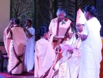 When all the guests were seated, first of all, our three jubilarians were invited onto the stage to be garlanded. Then there was the opening of the quasquicentennial monument. It was indeed a great honour for us all that His Eminence Cardinal Joseph Coutts blessed the quasquicentennial monument erected on the wall of St. Joseph School where the history of our Province was initiated.