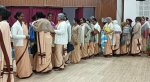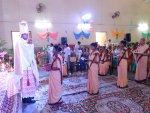 The main celebrant, the concelebrants, Sr. Lucy Emmanuel, the Provincial, Sr. Moly Augustine, the Tertian mistress, our five junior Sisters and their parents were led to the alter by the women of the parish with their lively and rhythmic steps. Bishop Deepak laid great stress during the homily on the prayers used during the Profession ceremony itself from the beginning till the end. He said that every word speaks volumes and it is worth spending time to understand its depth and meaning of consecrated life.