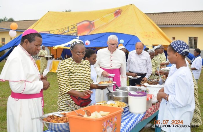 Special recognition was given to the presence of His Excellency Monsignor José-Claude Mbimbi Mbamba; Sisters of Charity from neighboring communities; Sister Marie-Auxiliatrice Misenga, the special guest from Mbuji-Mayi; members of the diocesan clergy; consecrated persons from other religious congregations; political and administrative authorities; teachers and students; parents and alumni of Lycée Mbuetete ya Mbu. All came from far and wide to join the Sisters of Charity of Jesus and Mary in celebrating the 130th anniversary of the school, the first educational institution in the area.